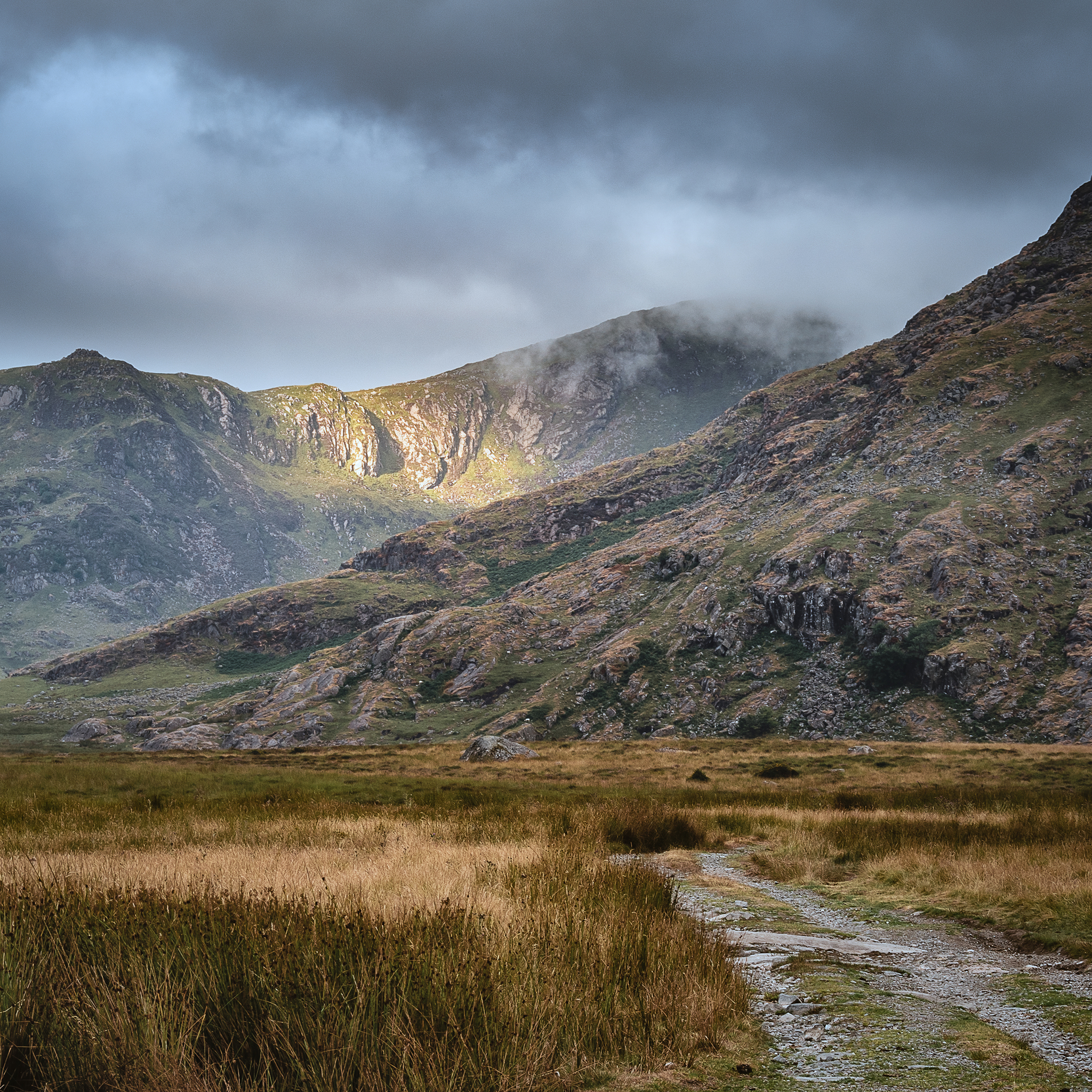 None of these valleys are great for golden hour light, except sunrise around mid-summer. The valleys are steep sided and shady. But when high daylight sun breaks through the clouds and lights up patches of the rocky ridges it’s sensational for the landscape photographer. Tranquil and epic at the same time.