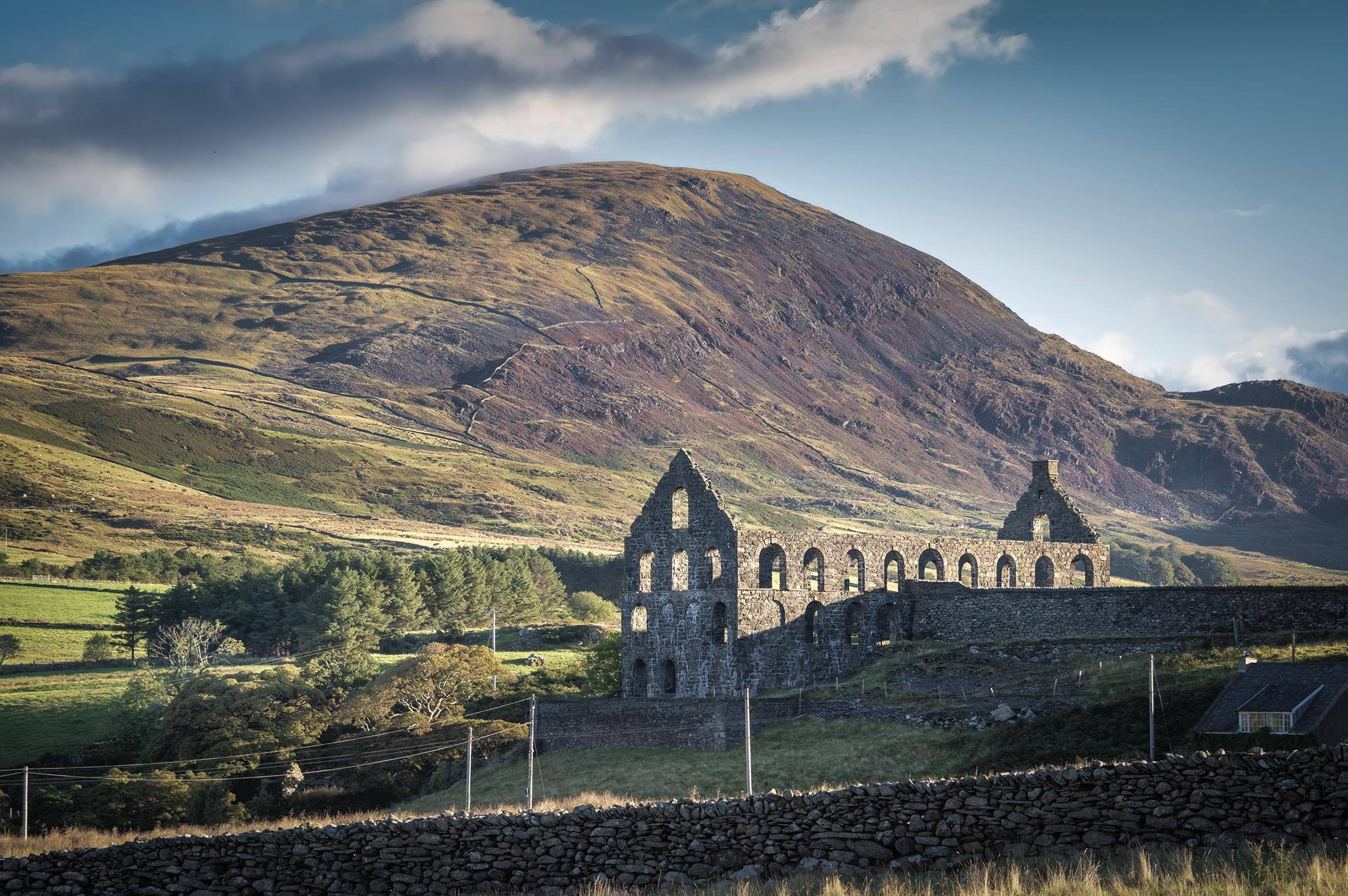 Once you have passed the derelict slate quarry village of Treforys, about a third of the way from the parking near the dam, there is no official marked footpath, but the dry stone walls can be scaled using the styles which can be a little difficult to locate without local knowledge. But the walking between the styles and up to the summit is a long steady gradient without too much technical difficulty. The walk should take you about 2 to 3 hours.