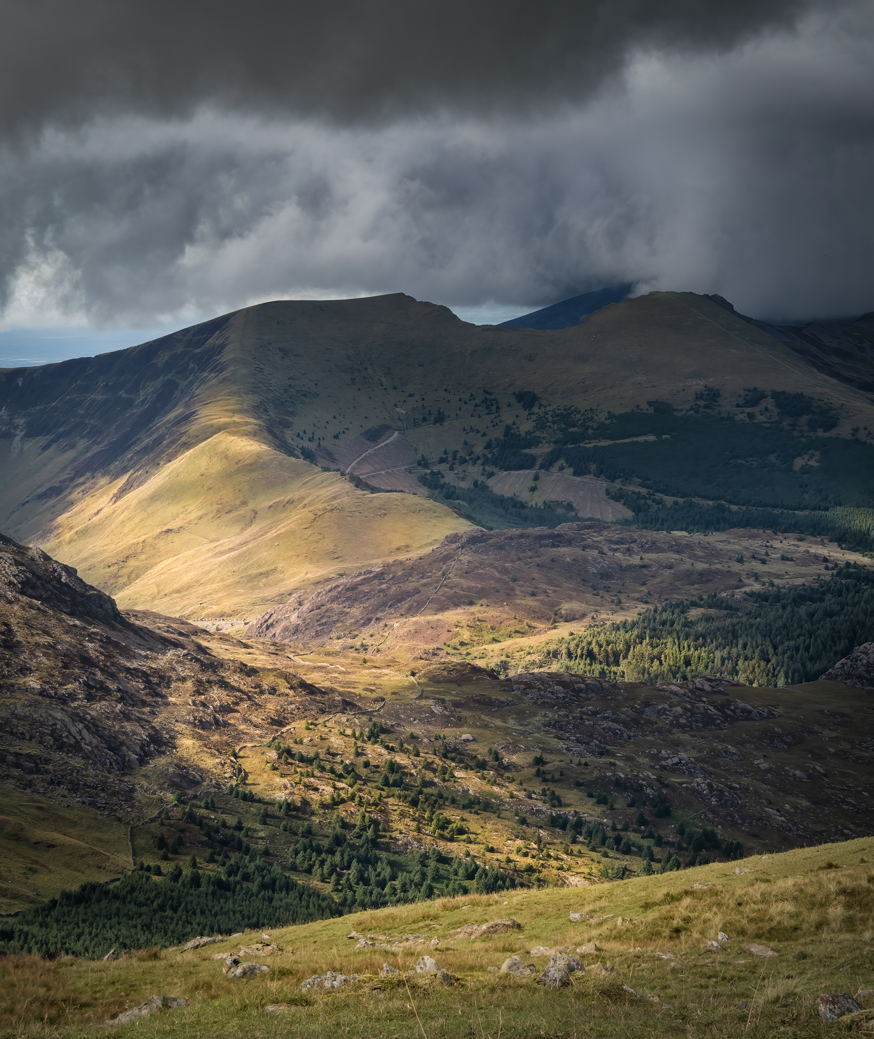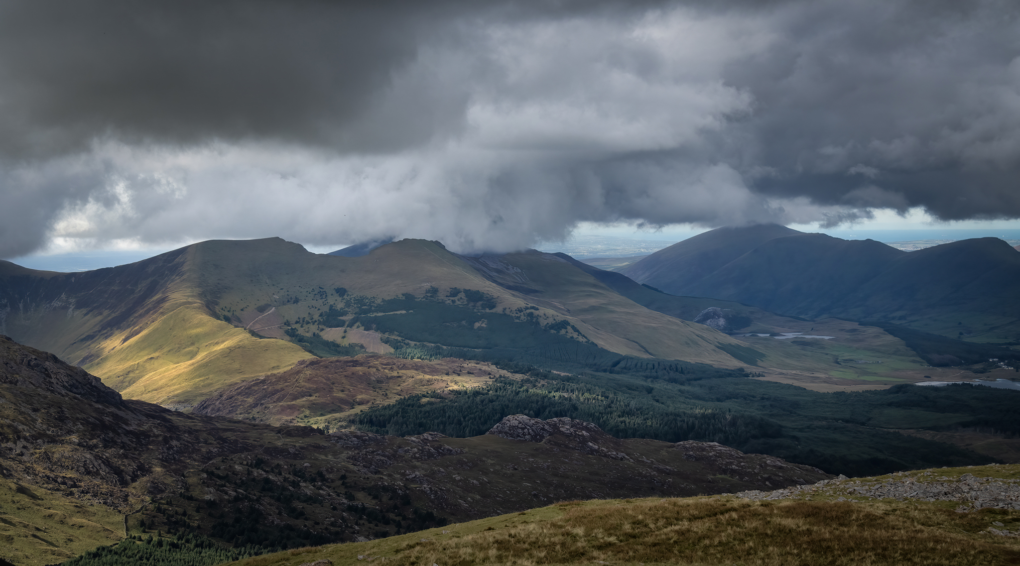 The views from the summit are as spectacular as any within the park, offering panoramas of the Snowdon, the Moelwyns, the Nantlle Ridge and down to the coast to Porthmadog.